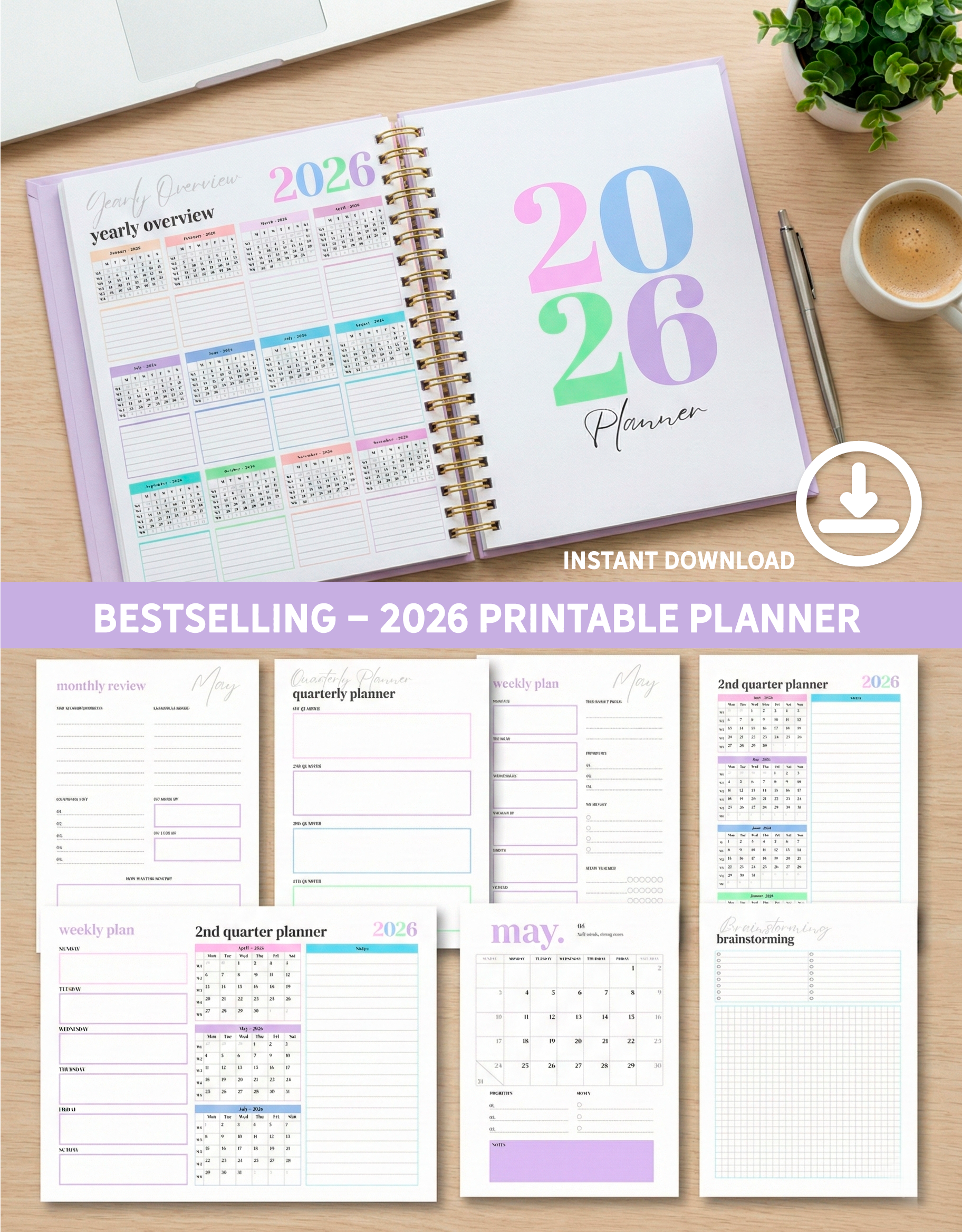 2026 Printable Planner, Instant Download