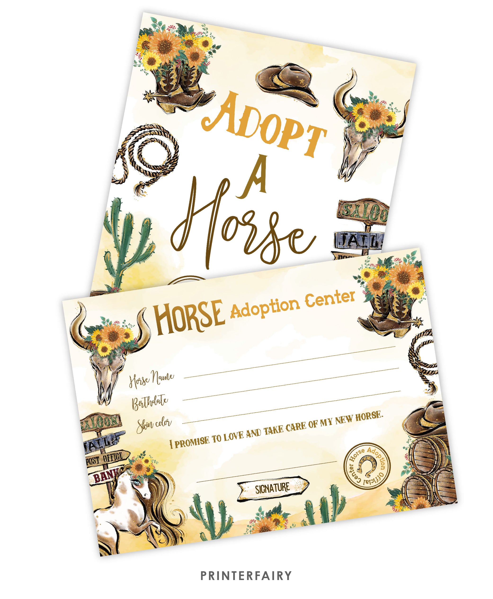 Adopt a Horse Sign and Certificate