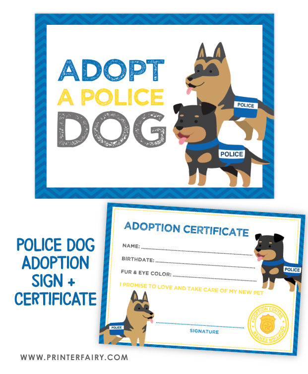 This listing is for a NON EDITABLE digital printable Adopt a Police Dog Set. Nothing personalized or physical will be shipped.