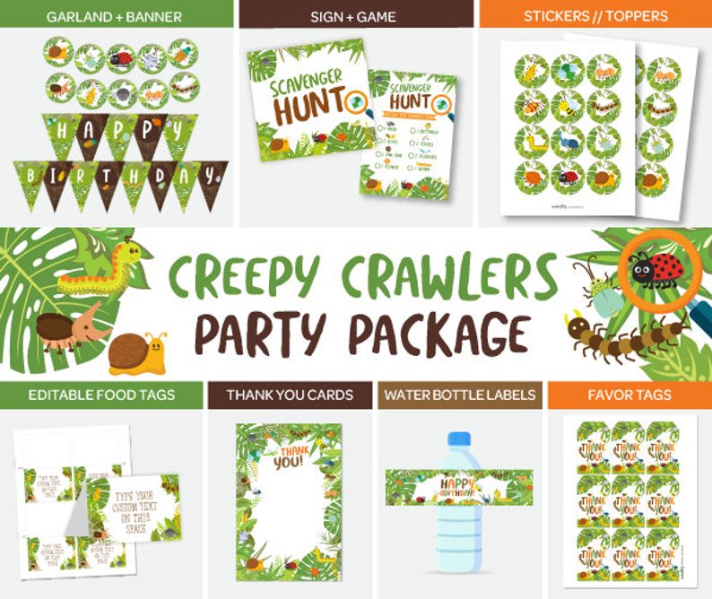 This listing is for a NON EDITABLE digital printable Bugs Party Pack. Nothing personalized or physical will be shipped.