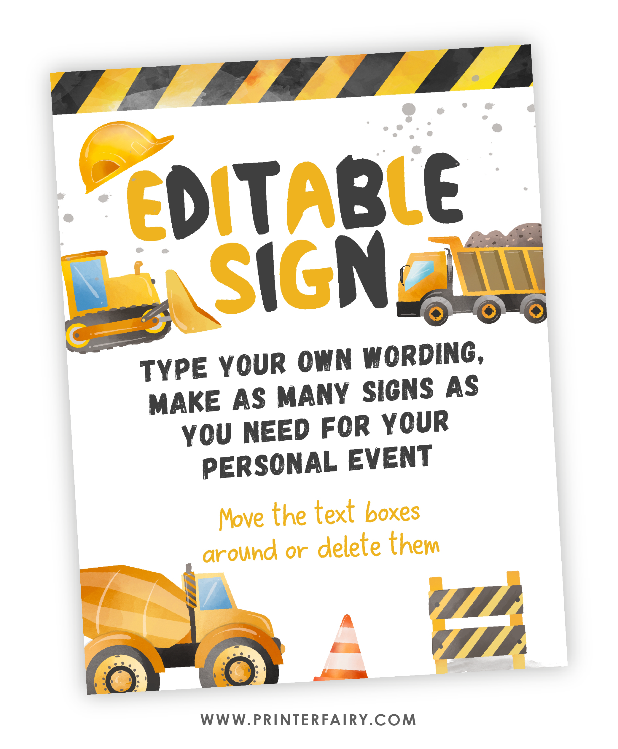This listing is for an editable digital printable sign. Nothing personalized or physical will be shipped.