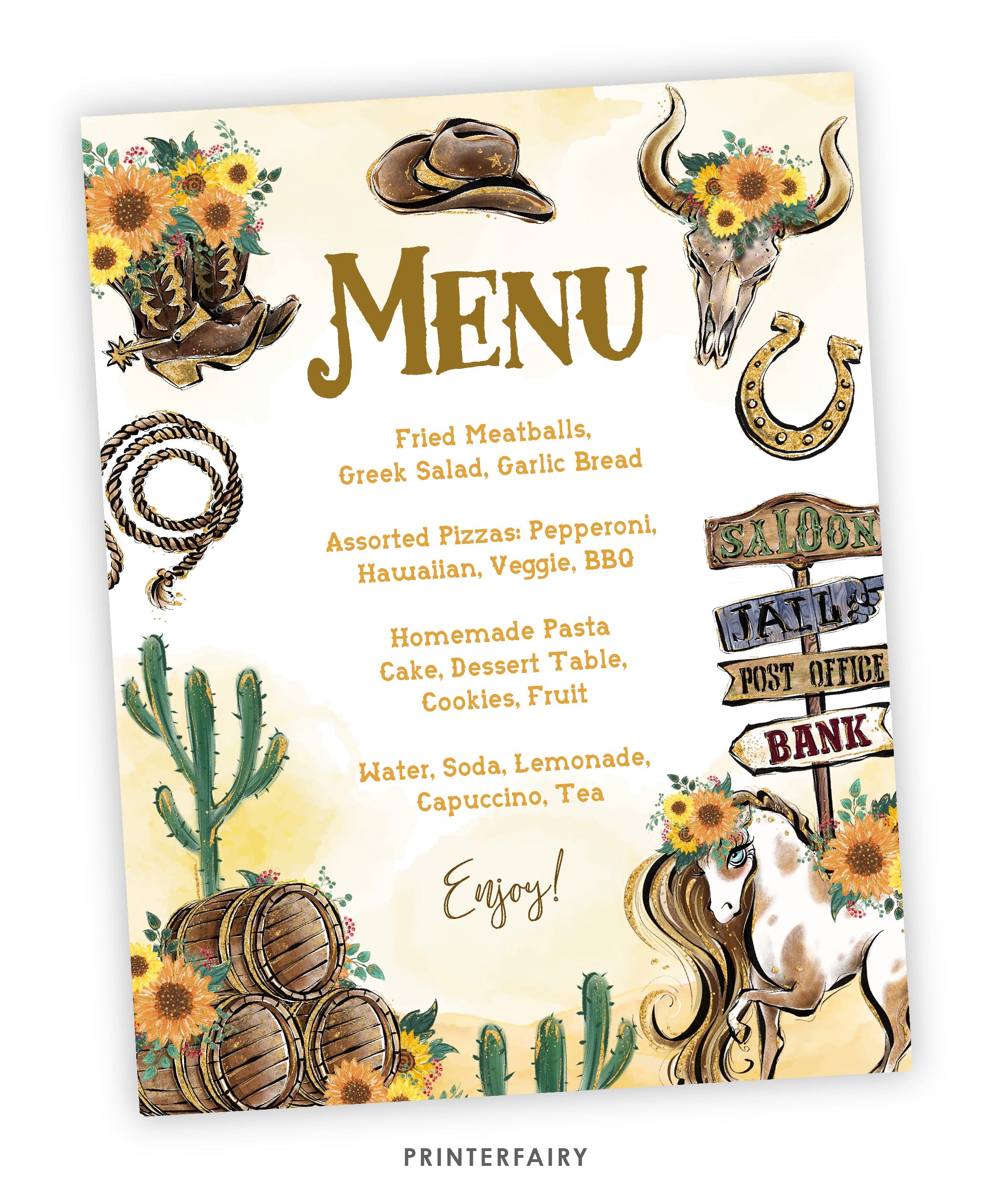 This listing is for an editable digital printable menu sign. Nothing personalized or physical will be shipped.