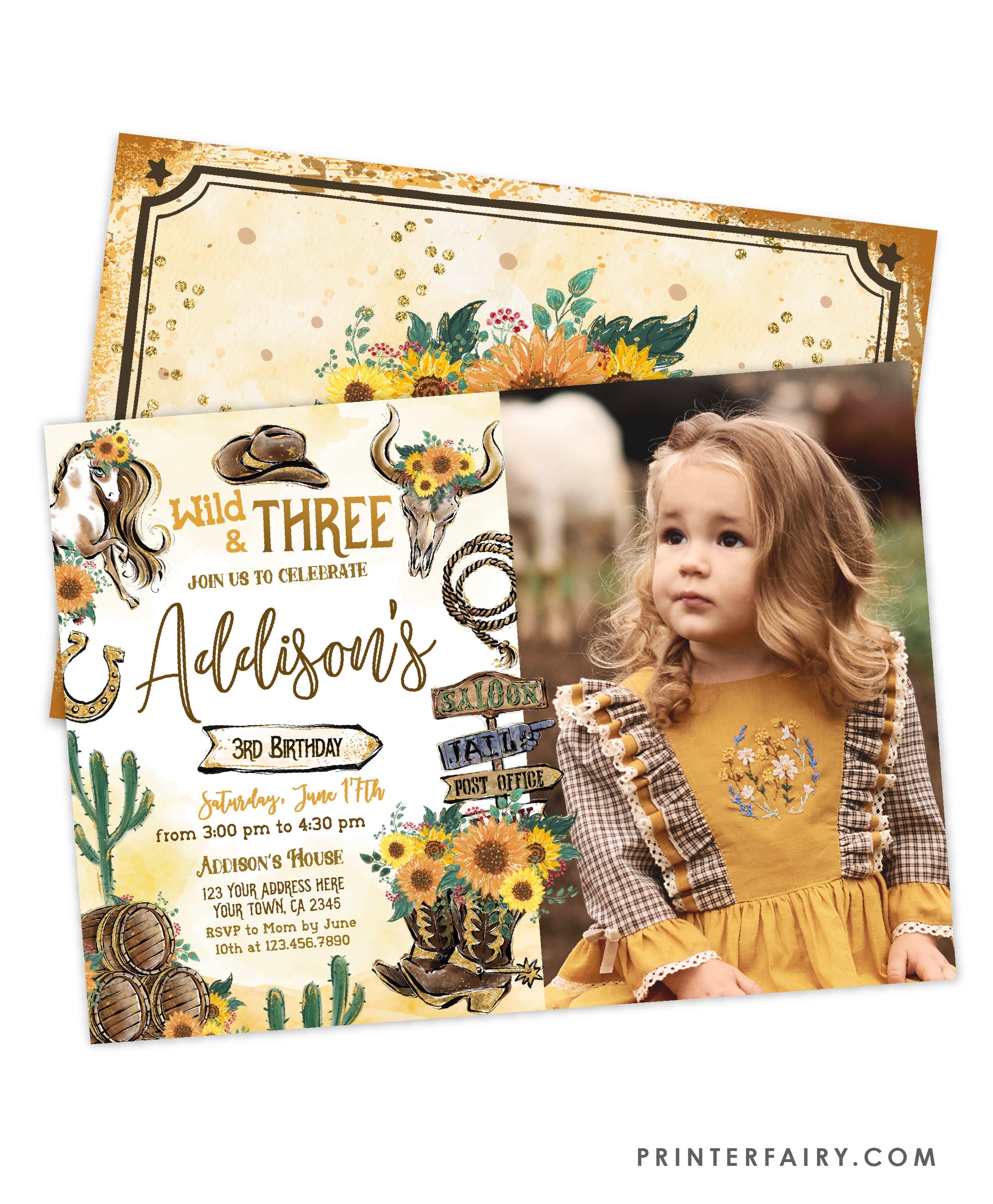 Cowgirl Third Birthday Invitation with Photo