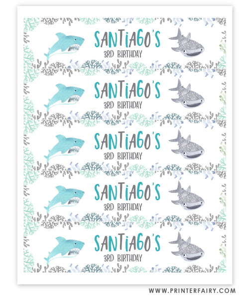 Cute Sharks Water Bottle Labels