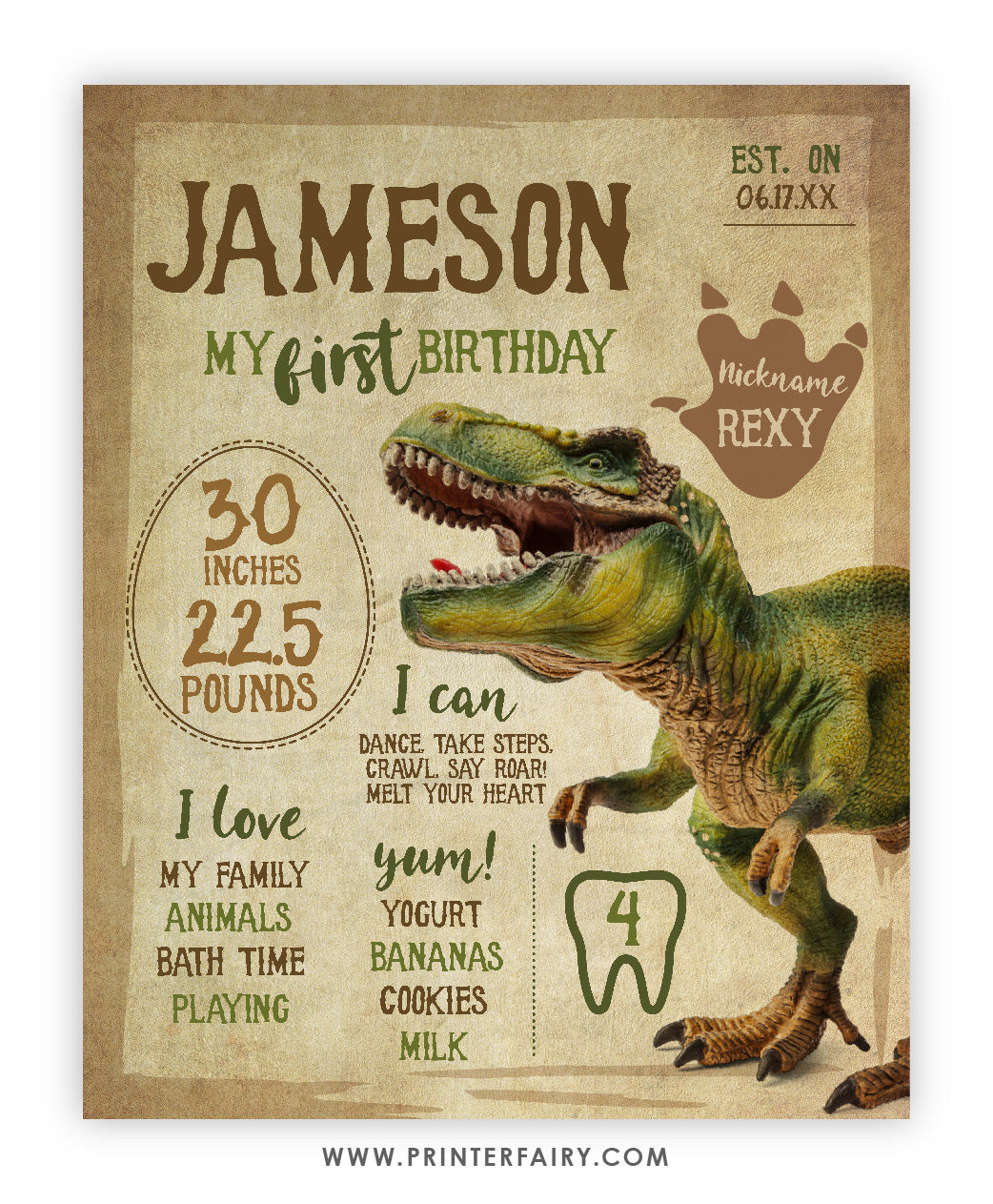 Dinosaur First Birthday Board