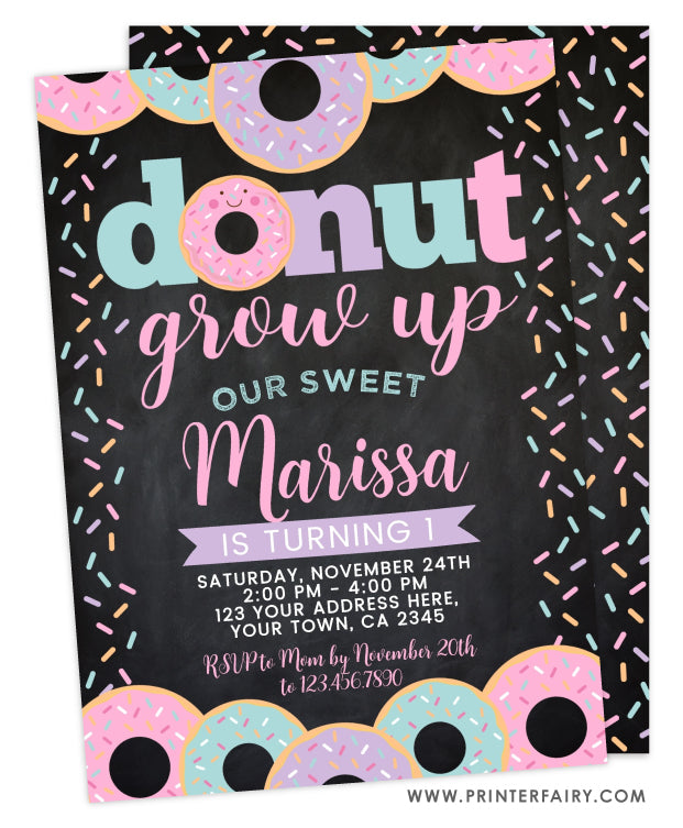 Donut Grow Up First Birthday Invitation