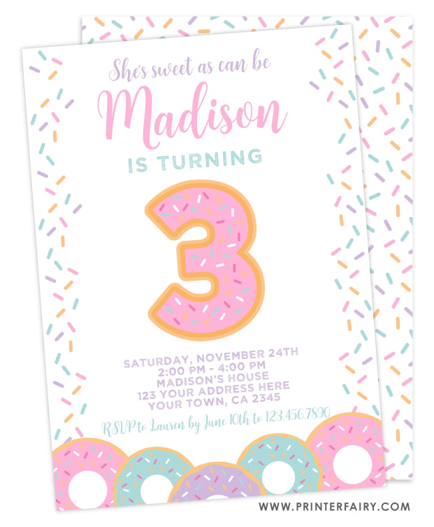 Donut Third Birthday Invitation