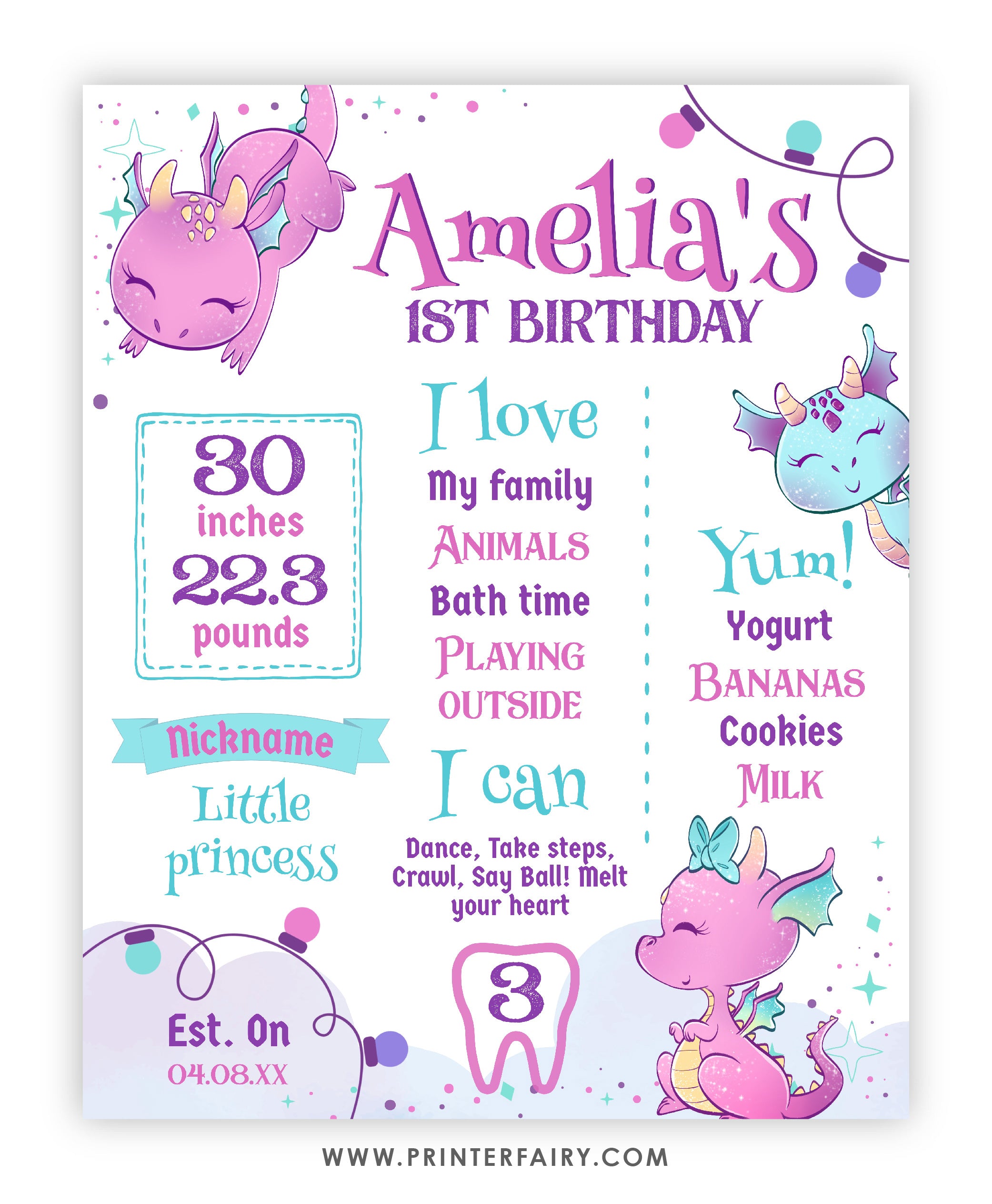 Dragon First Birthday Party Board
