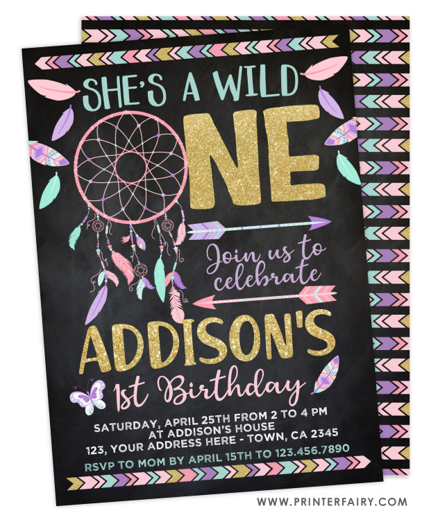 Dreamcatcher First Birthday Invitation