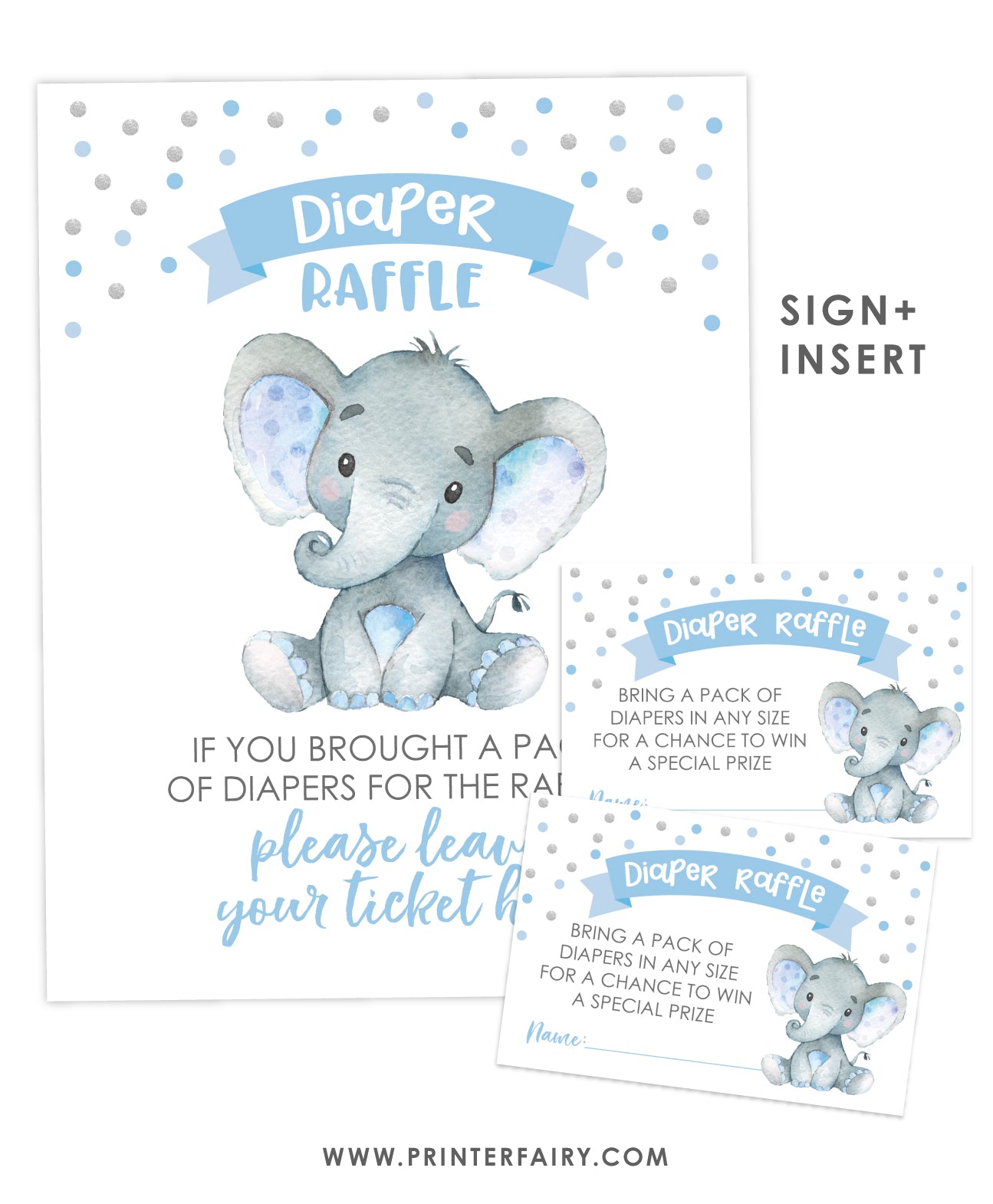 This listing is for a NON EDITABLE digital printable Elephant Diaper Raffle. Nothing personalized or physical will be shipped.