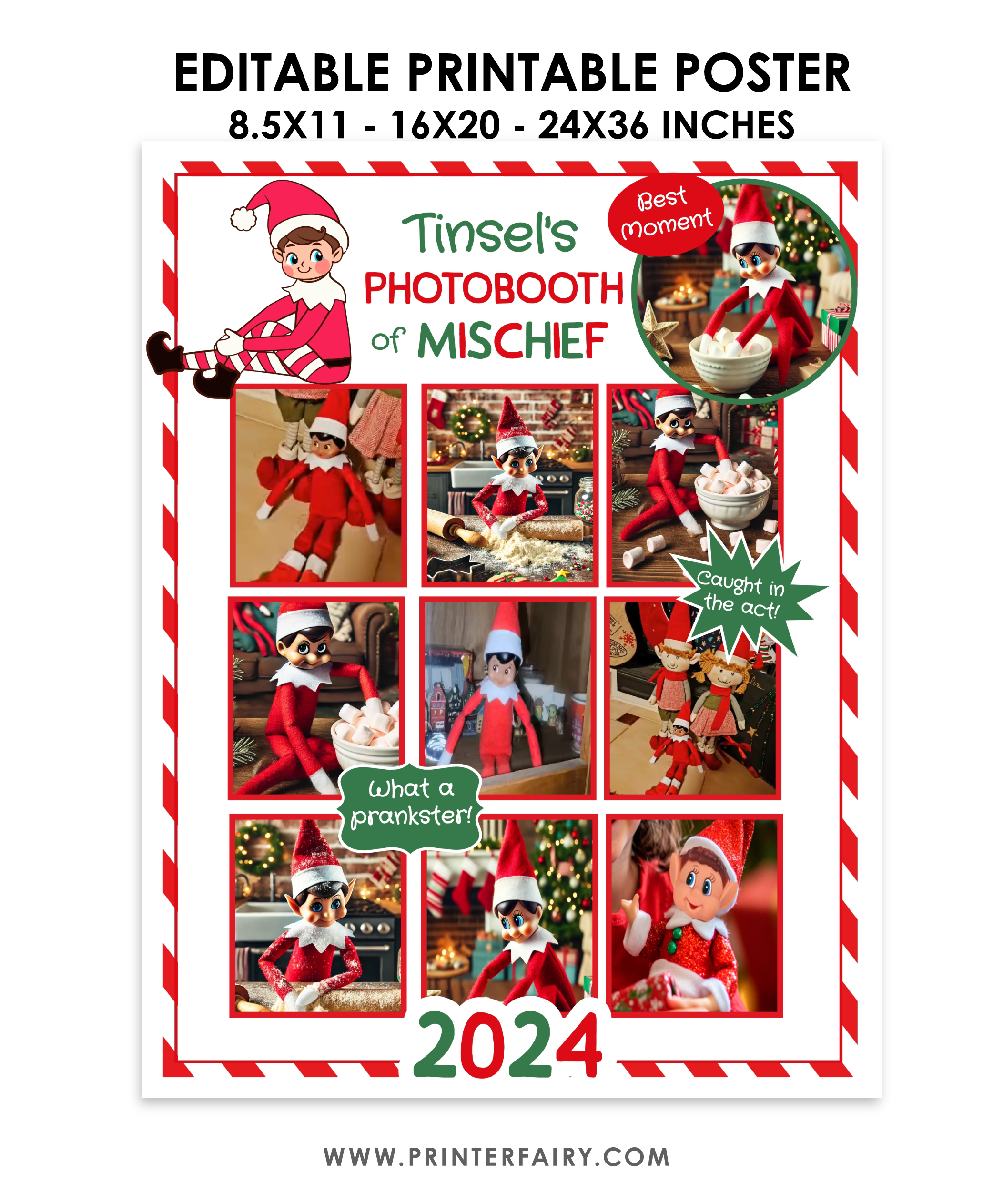 Capture your Elf on the Shelf’s funniest pranks with this festive poster! Features editable photo frames, space for captions, and a "special moment” highlight. Perfect for scrapbooks or holiday displays. Instant download, easy to print! 🖨️✨