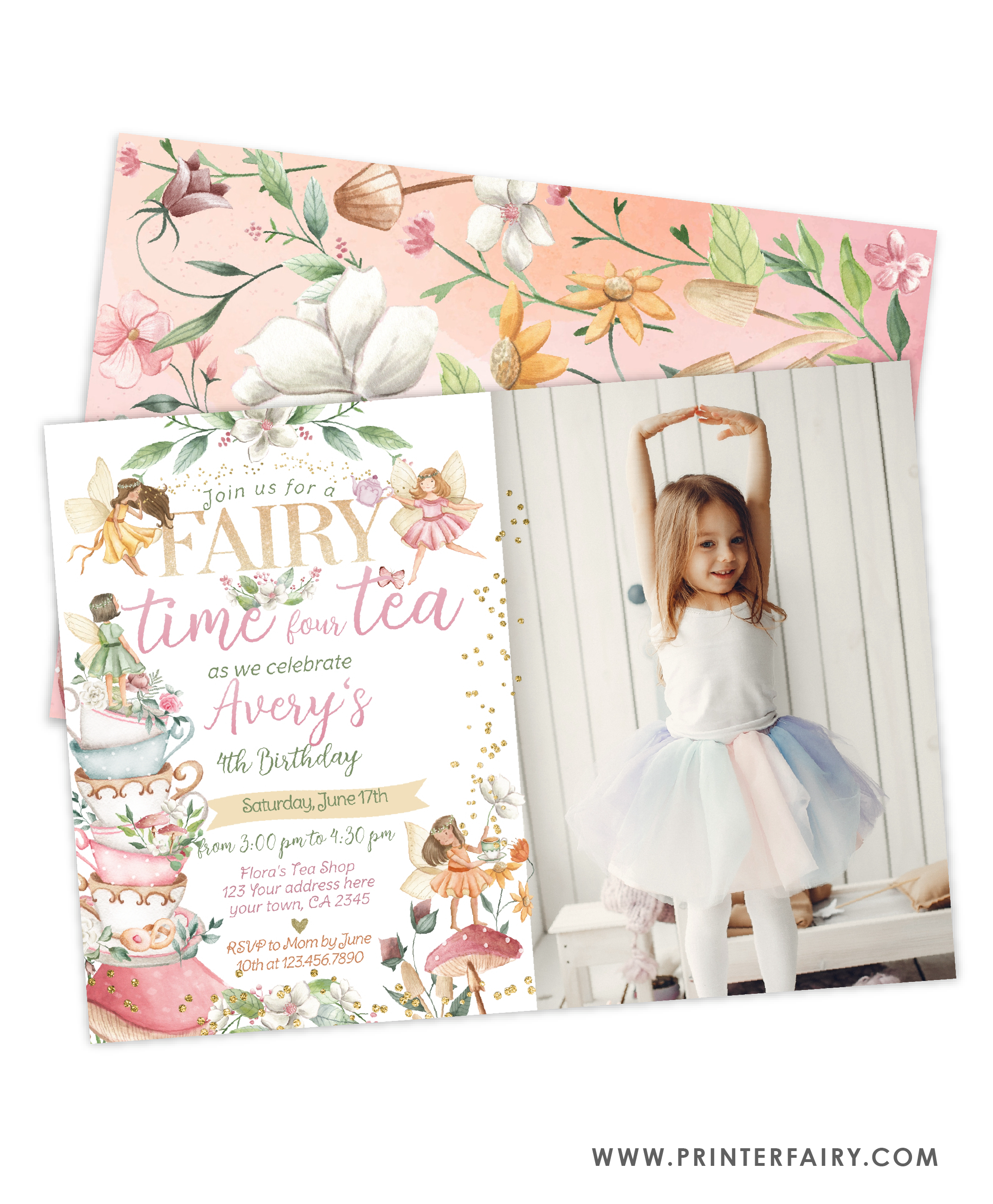 Fairytale Partea Fourth Birthday Invitation with Photo