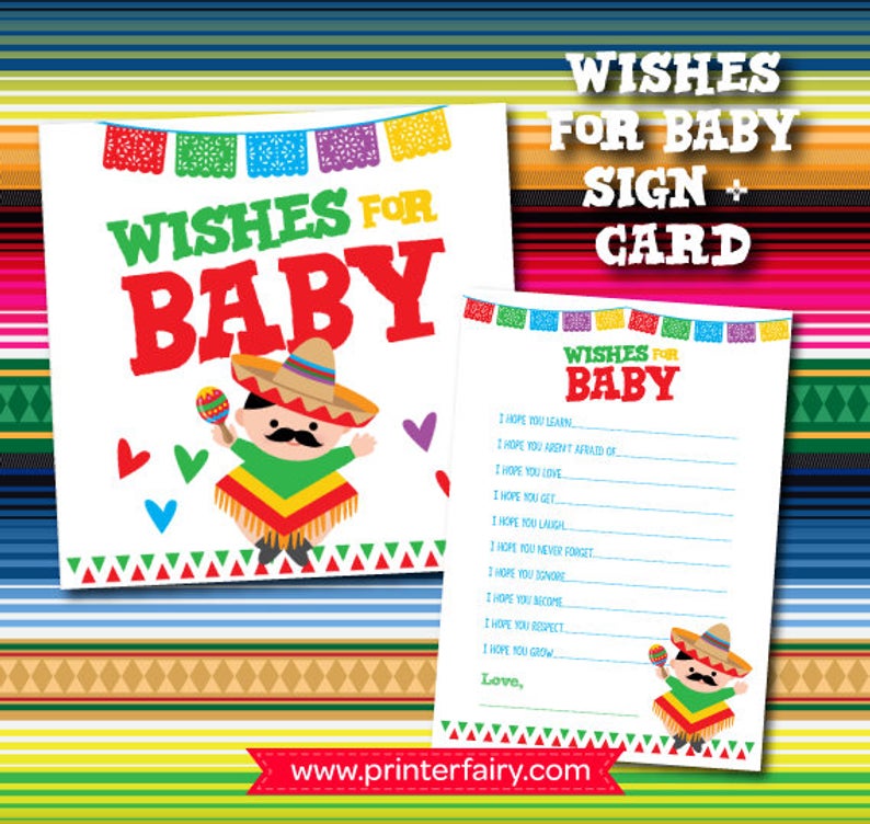 This listing is for a NON EDITABLE digital printable Fiesta Baby Shower Wishes For Baby. Nothing personalized or physical will be shipped.
