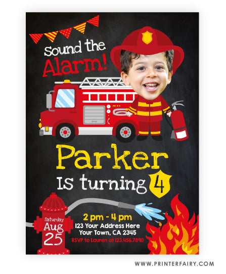 Firefighter Birthday Party Invitation with Photo