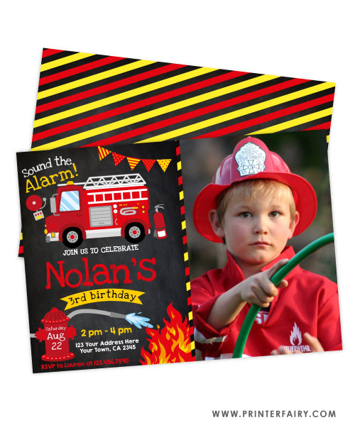 Firetruck Birthday Invitation with photo
