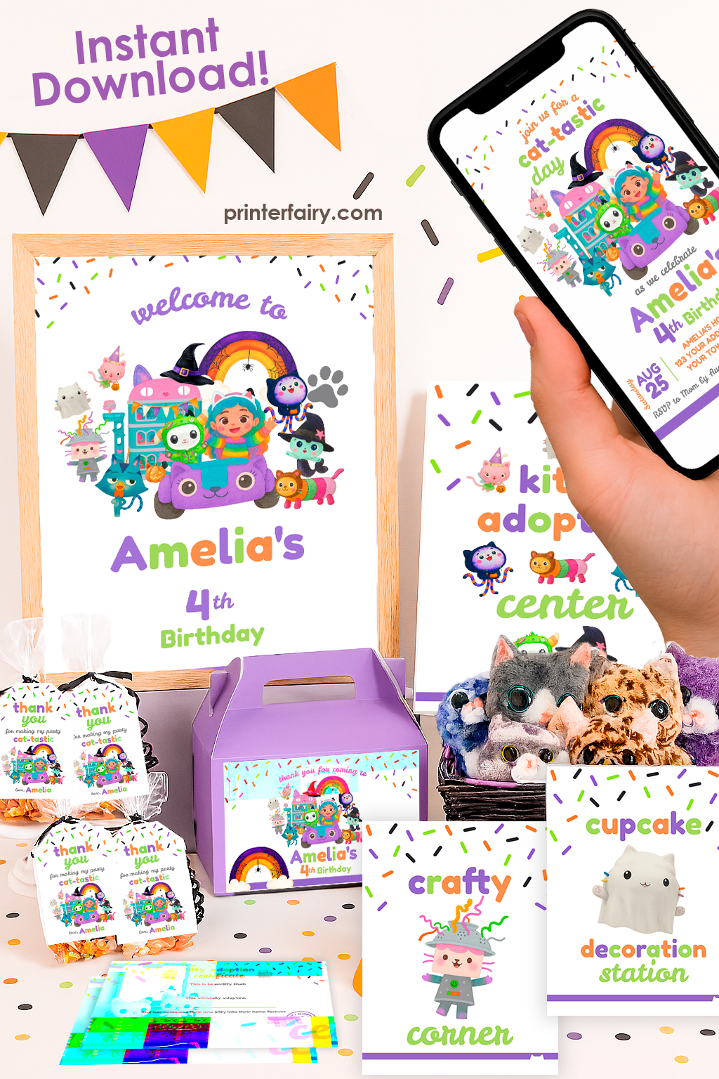 Perfect for creating a cohesive and personalized Halloween Gabby Dollhouse Birthday Party setup!