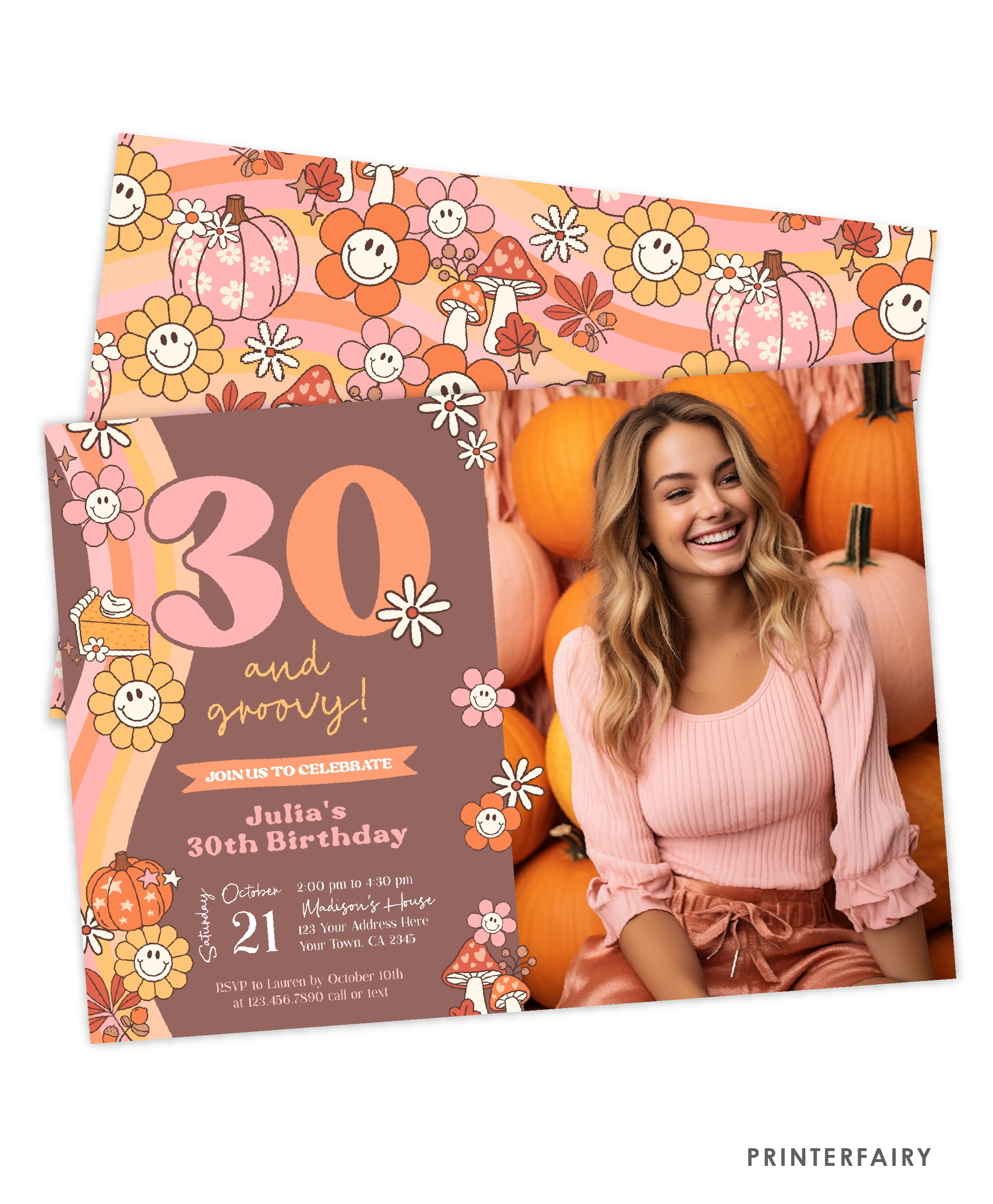 Groovy Pumpkin 30th Birthday Invitation with Photo