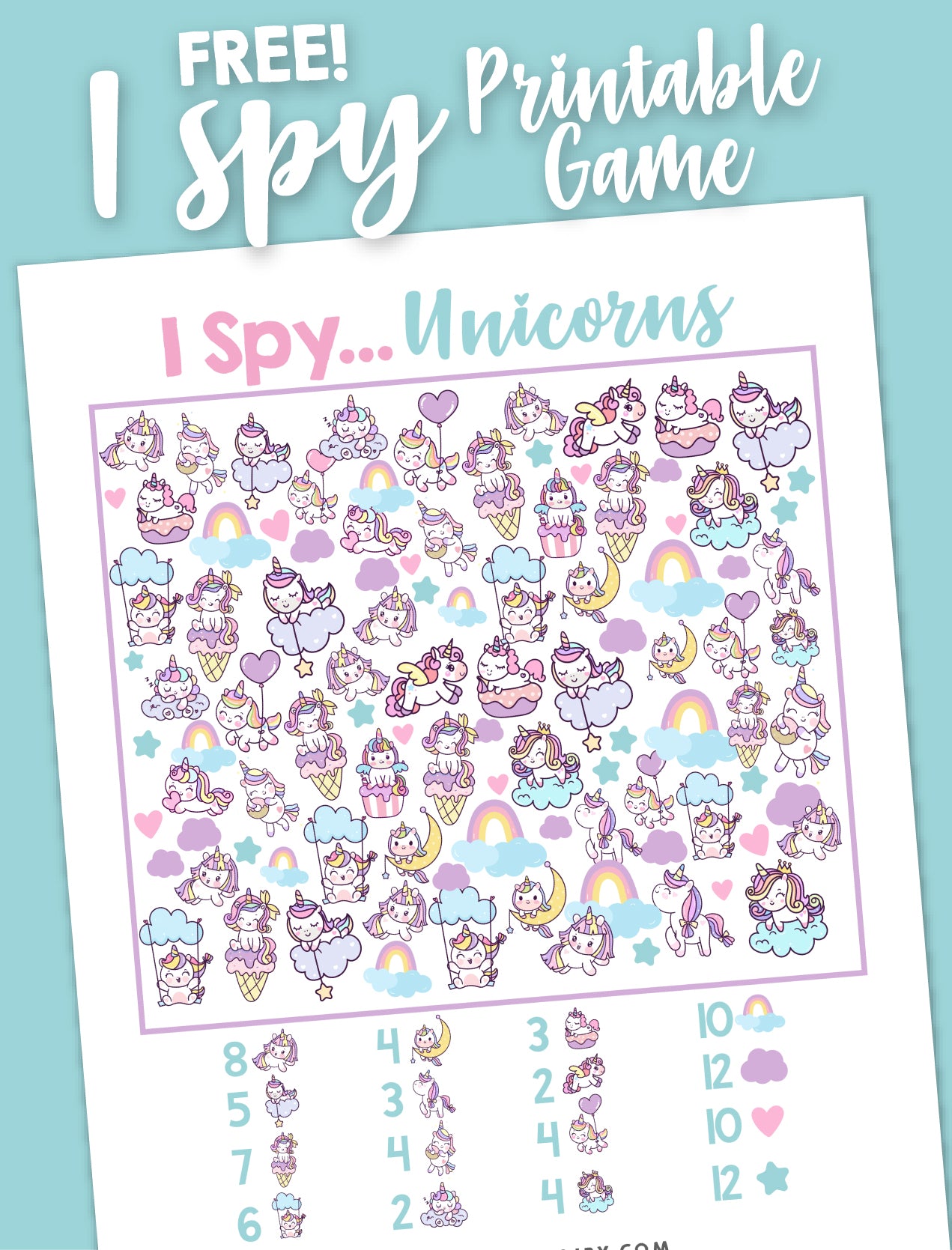 This listing is for a NON EDITABLE digital printable I Spy Unicorns. Nothing personalized or physical will be shipped.