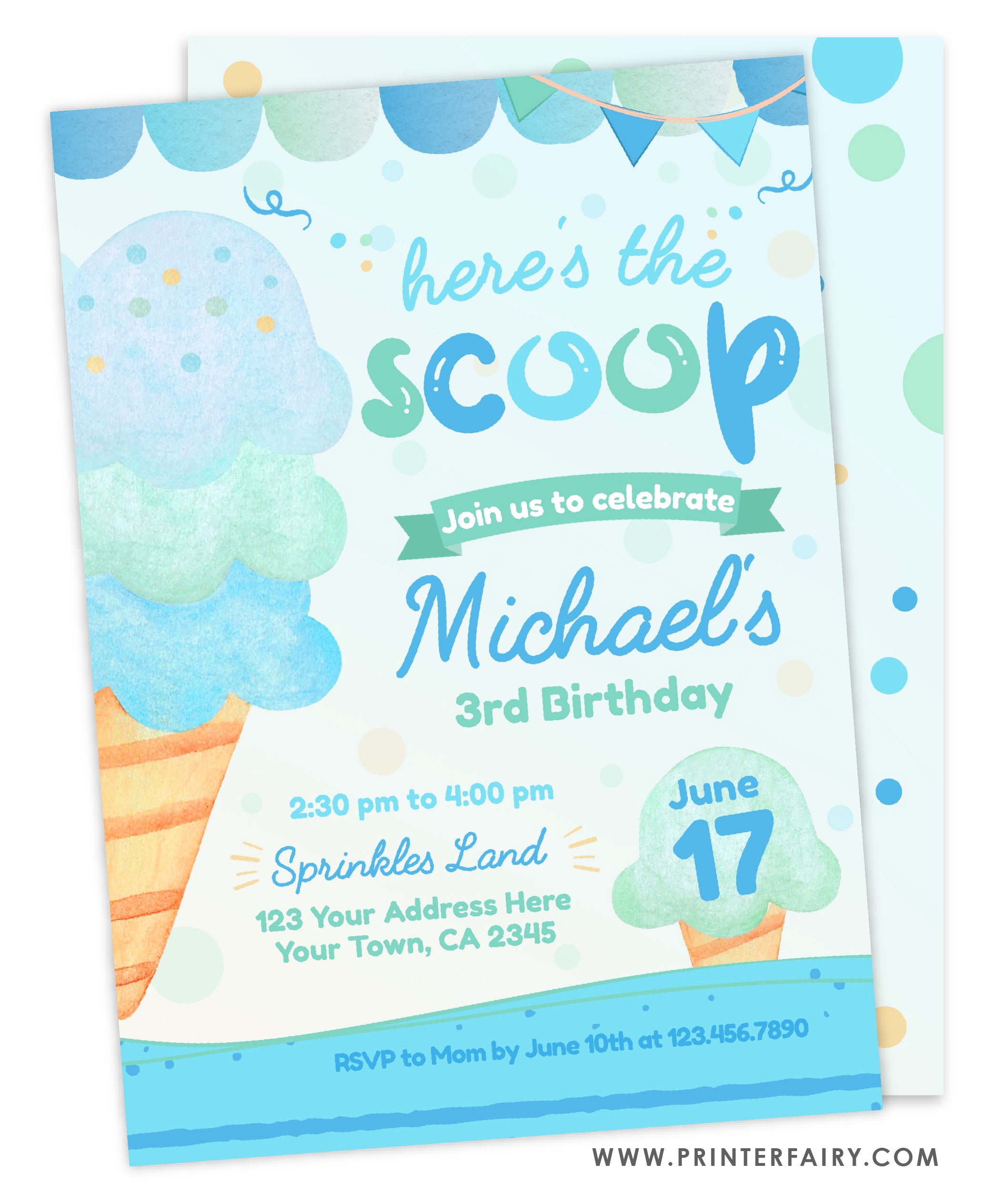 Ice Cream Birthday Party Invitation with Photo