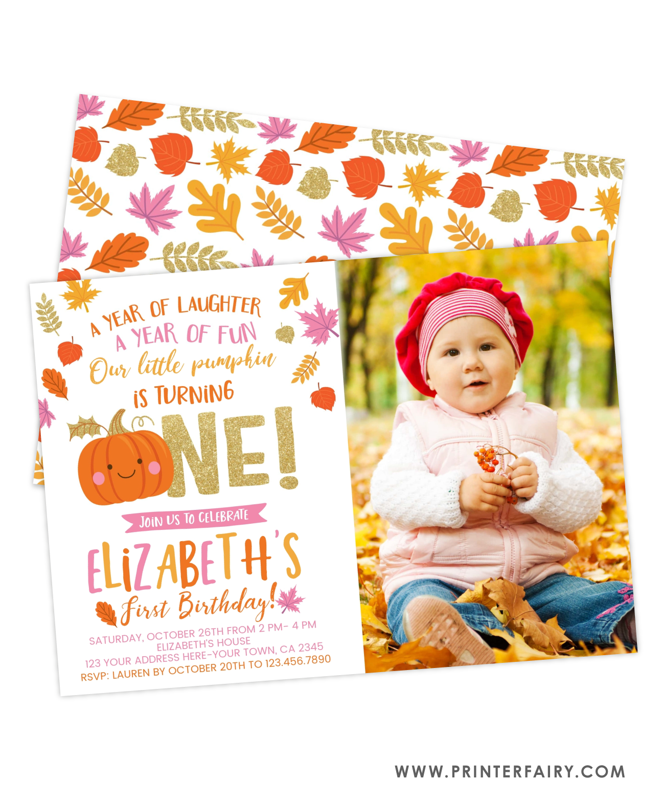 Little Pumpkin 1st Birthday Invitation with Picture