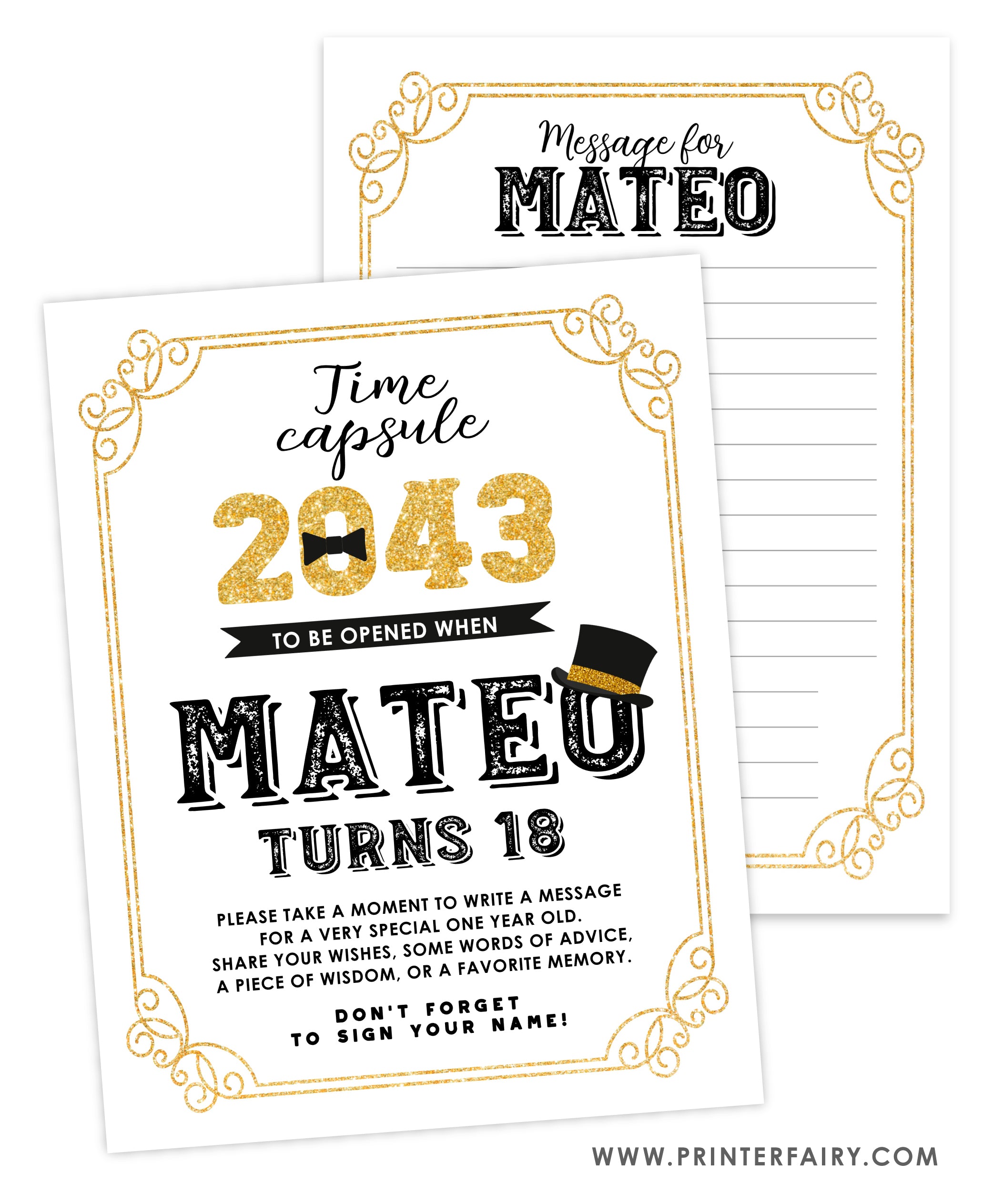 This listing is for an editable digital printable time capsule. Nothing personalized or physical will be shipped.