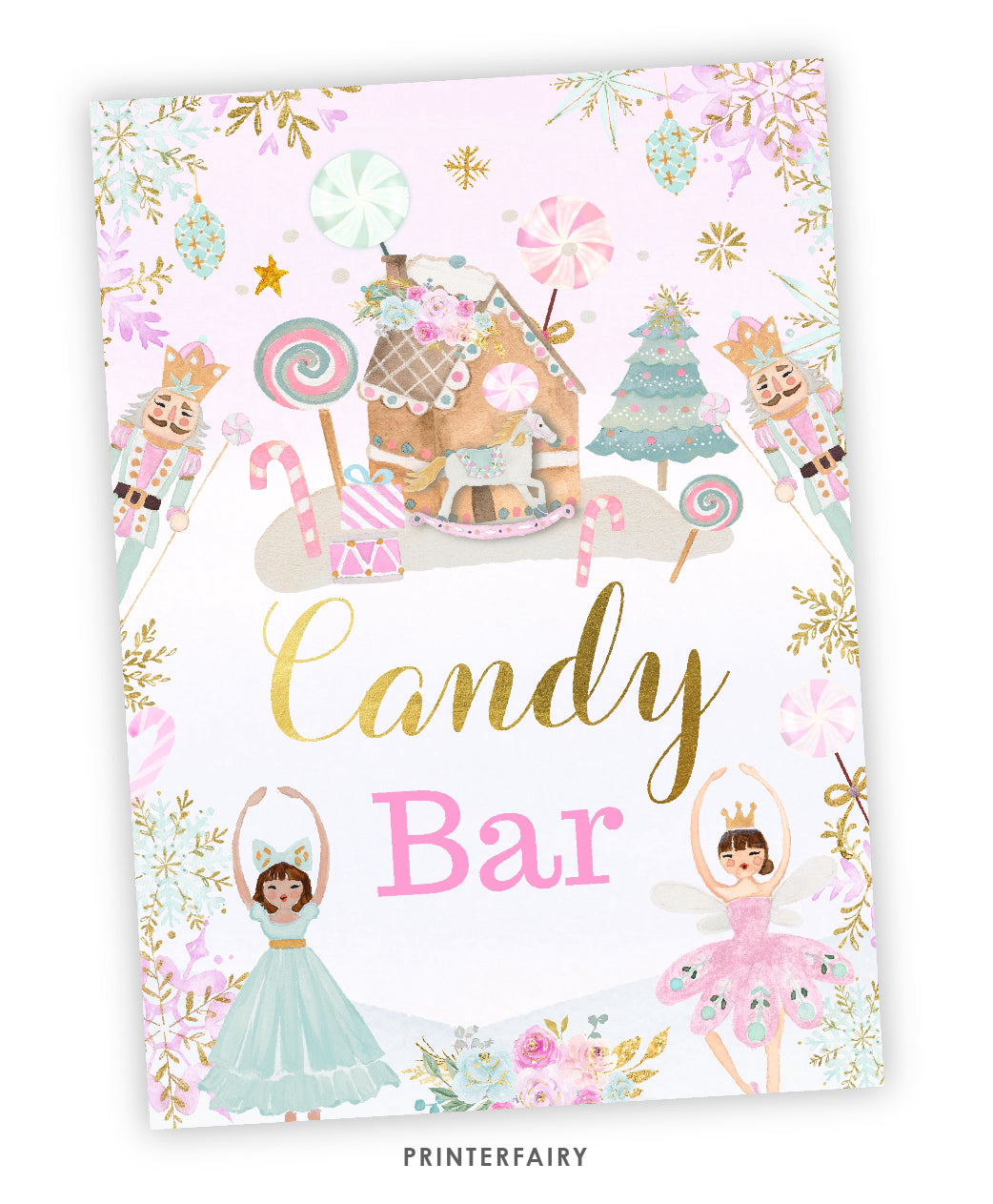 This listing is for a NON EDITABLE digital printable Nutcracker Candy Bar Sign. Nothing personalized or physical will be shipped.