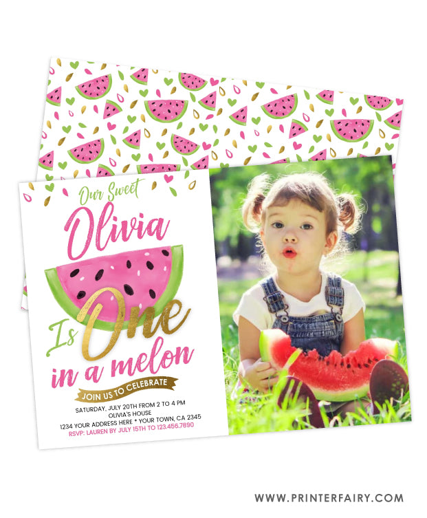 One in a Melon Birthday Invitation with Photo