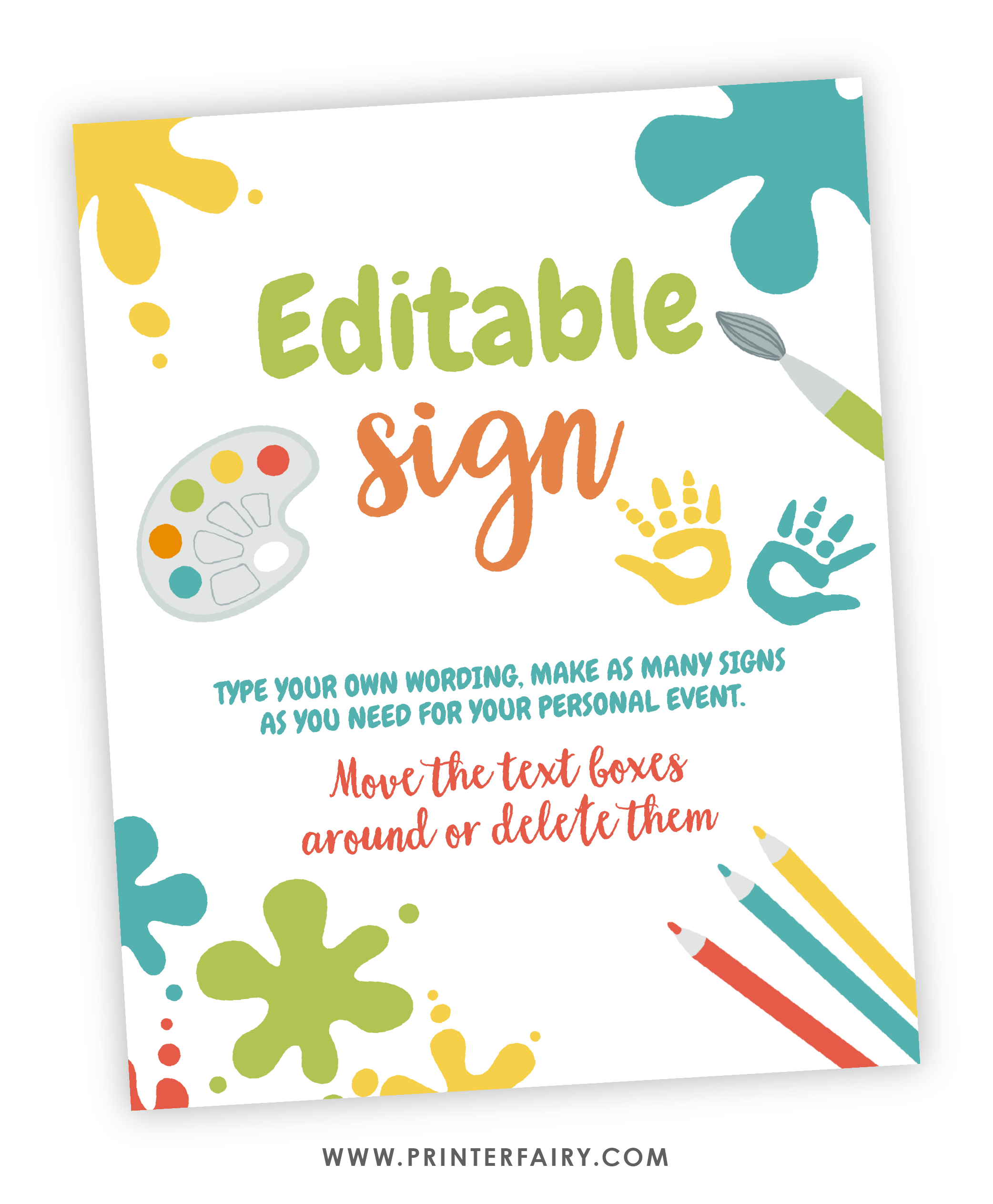 Paint Party Editable Sign