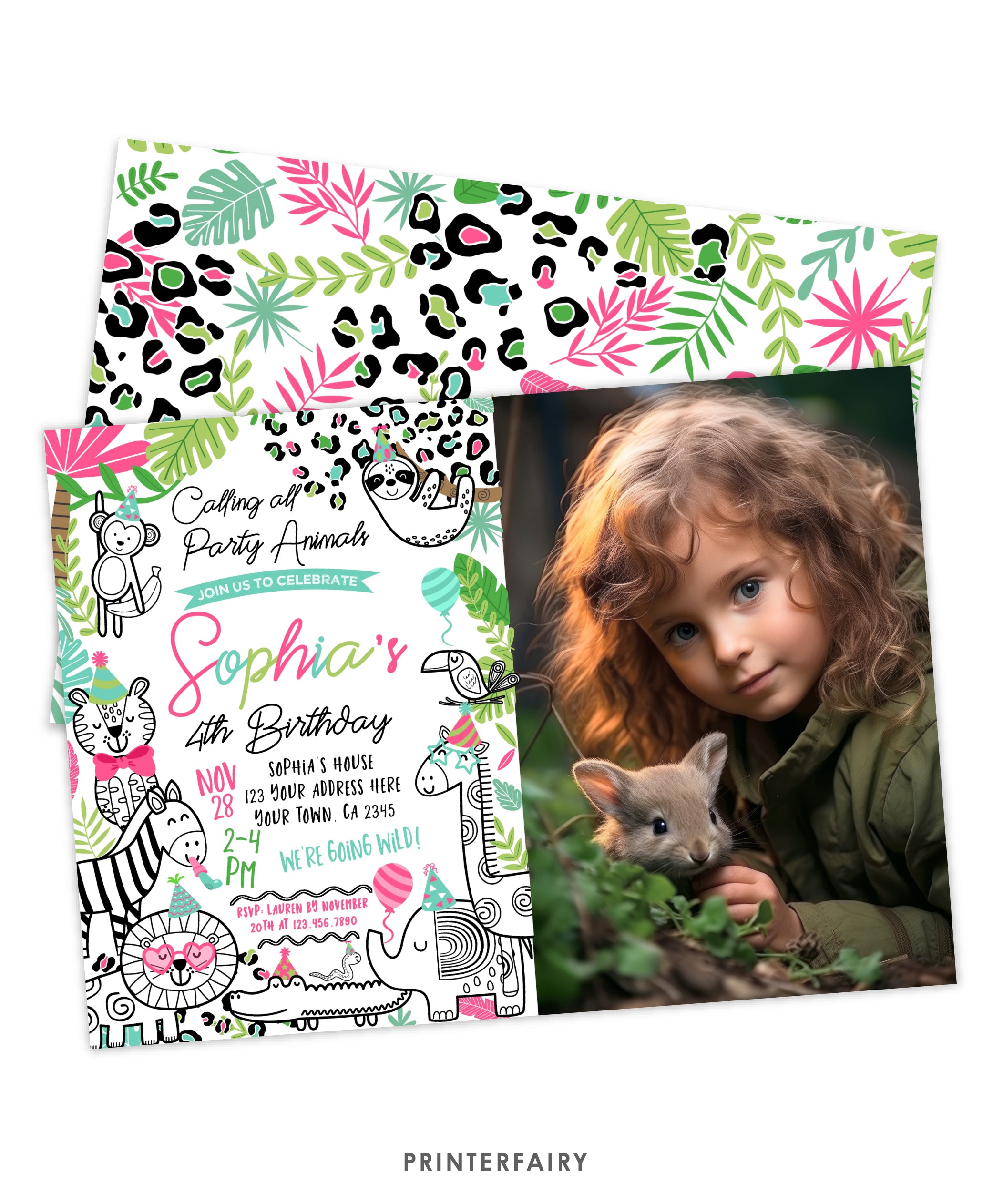 Party Animals Birthday Invitation with Photo