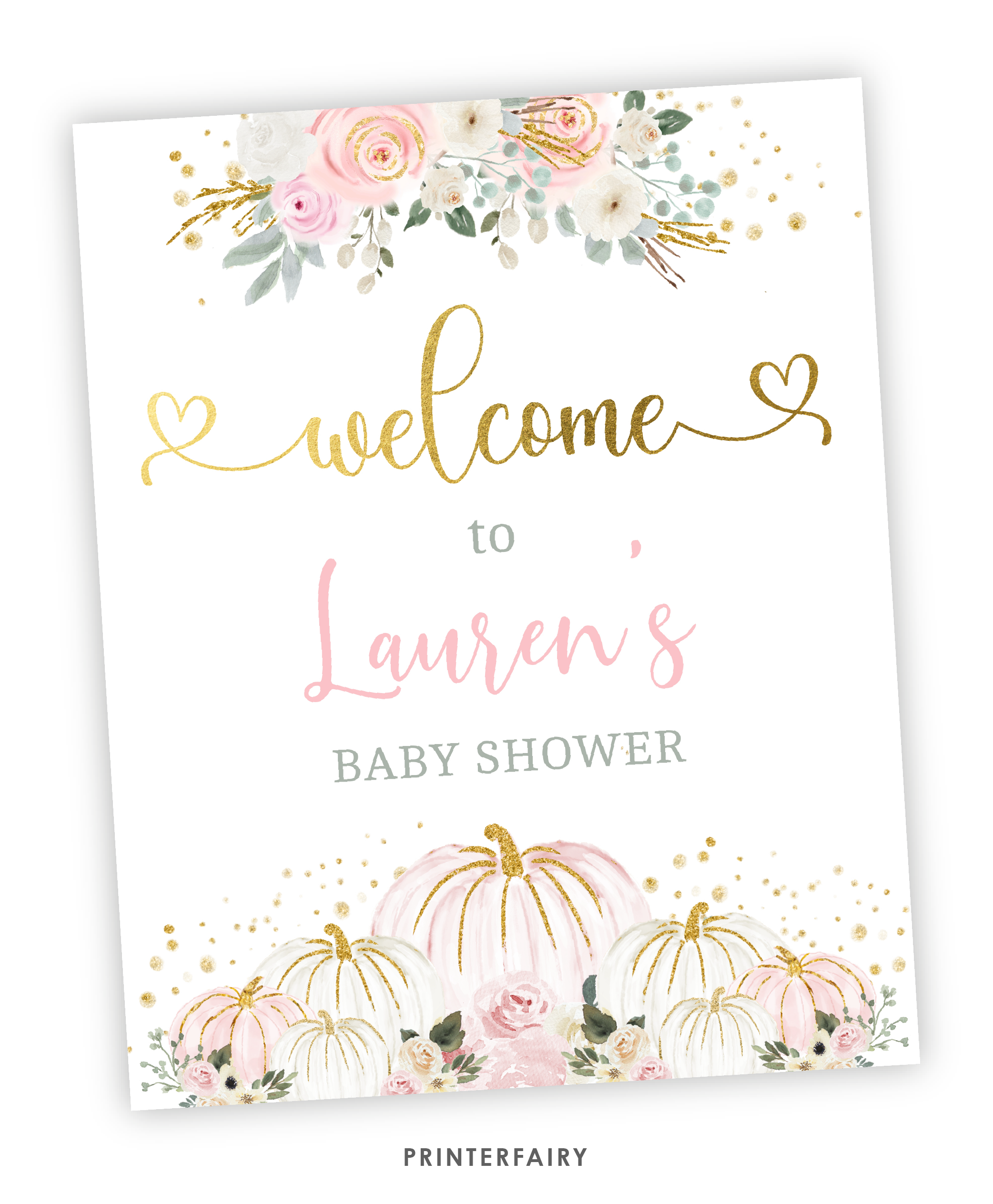 Pink Gold Pumpkin Baby Shower Welcome Sign