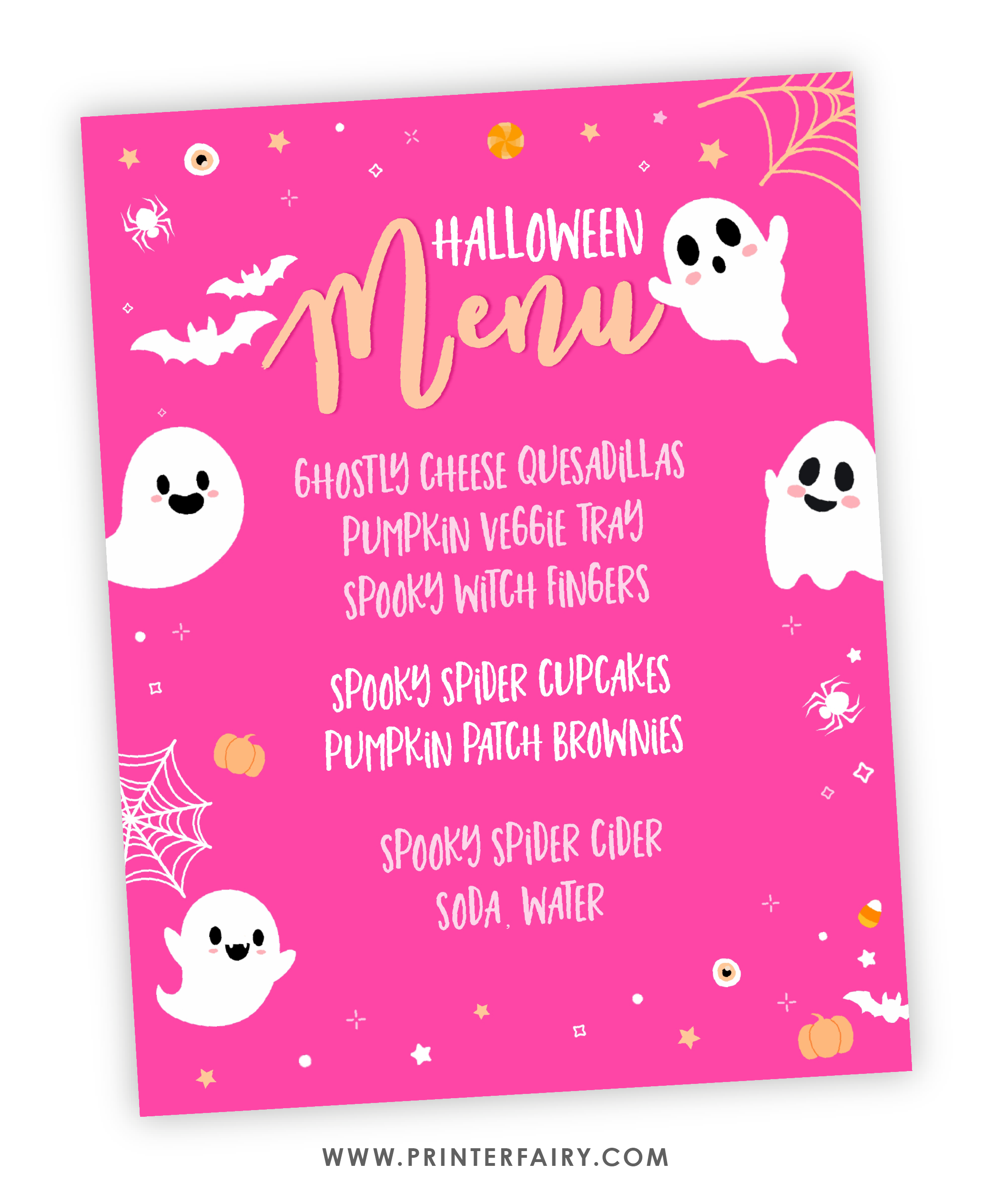 Pink Halloween Birthday Menu