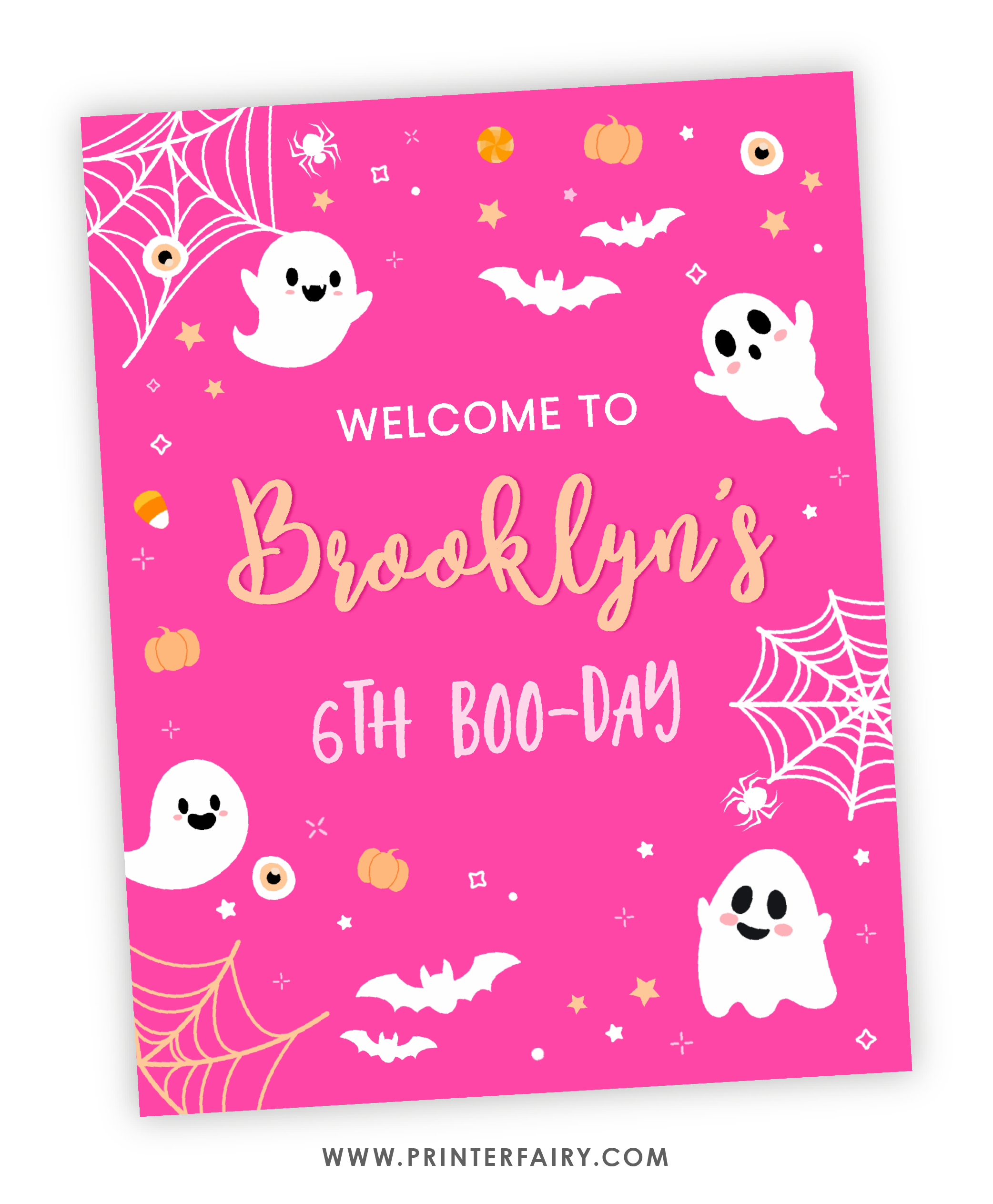 Pink Halloween Party Welcome Sign