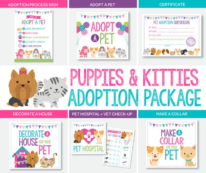 This listing is for a NON EDITABLE digital printable Puppies & Kitties Adoption Full Pack. Nothing personalized or physical will be shipped.
