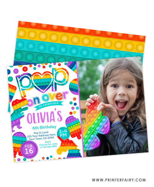 Rainbow Pop It Birthday Invitation with photo