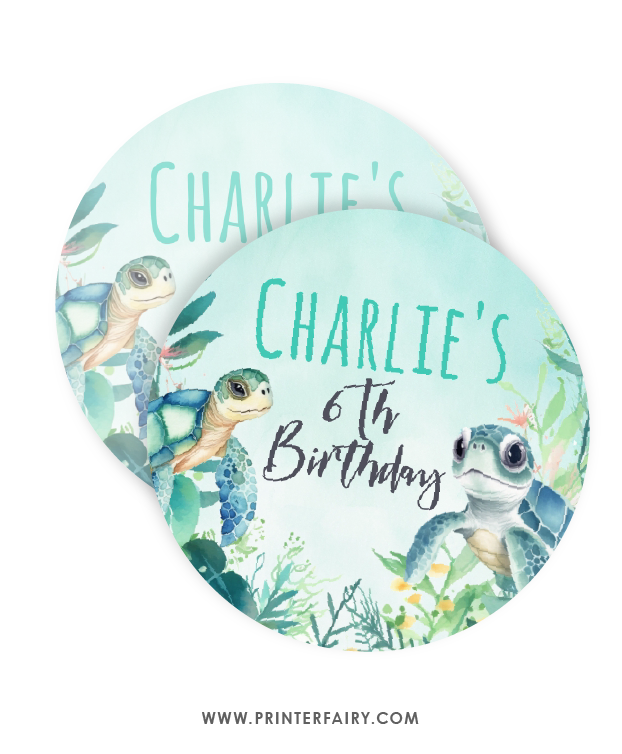 Sea Turtle Birthday Water Bottle Label