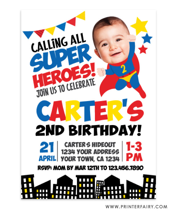 Superhero Birthday Invitation with Photo