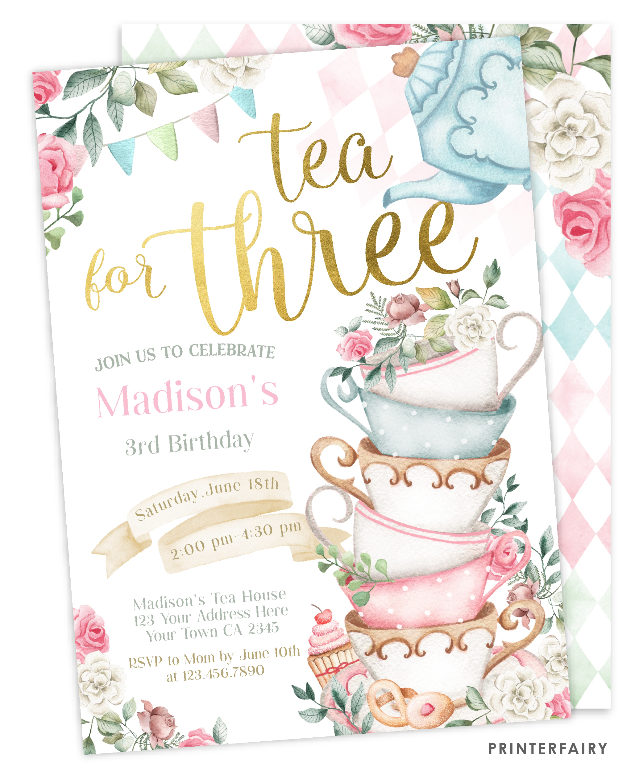 Tea for Three Birthday Party Invite