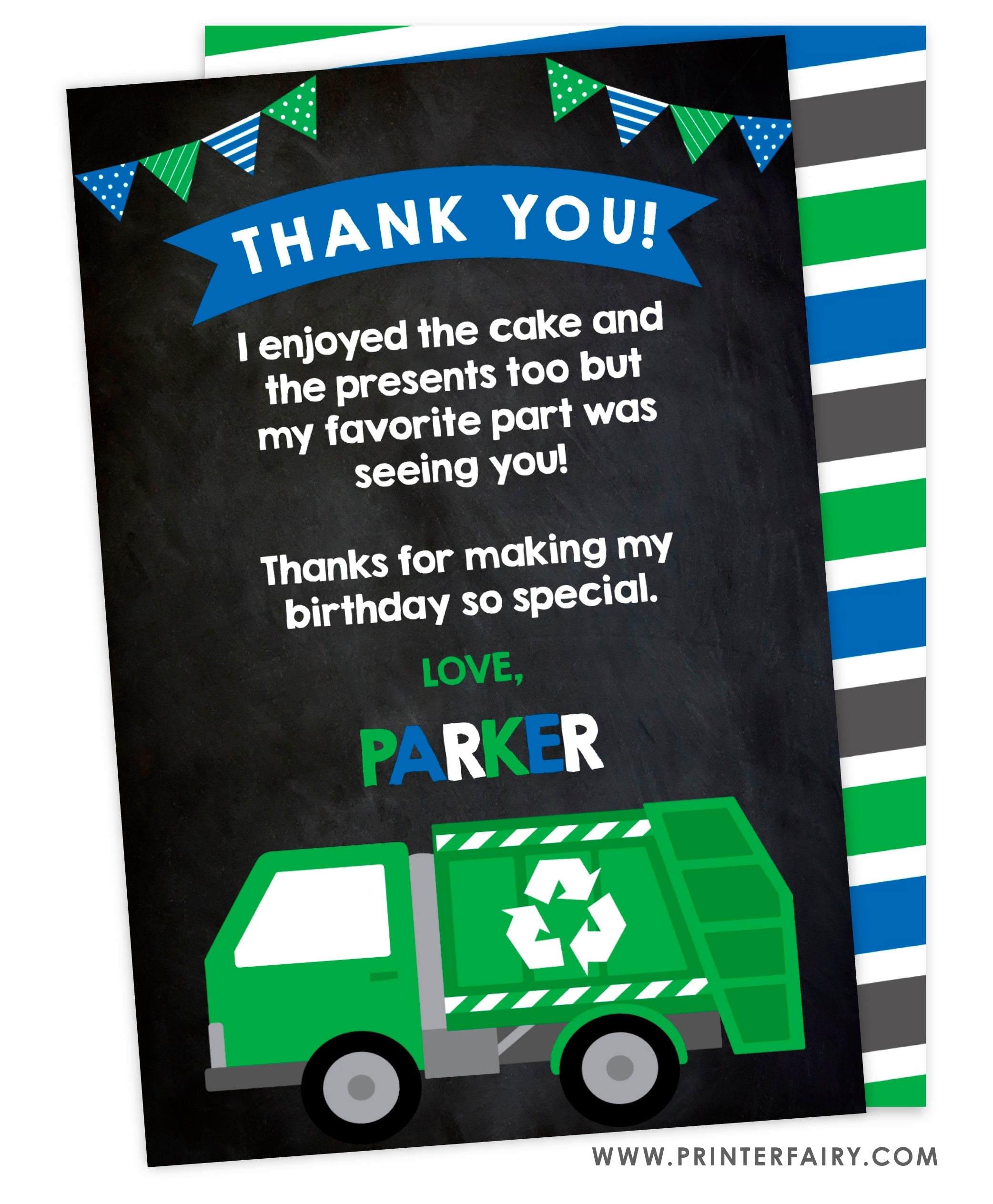Trash Truck Birthday Party Thank You Card