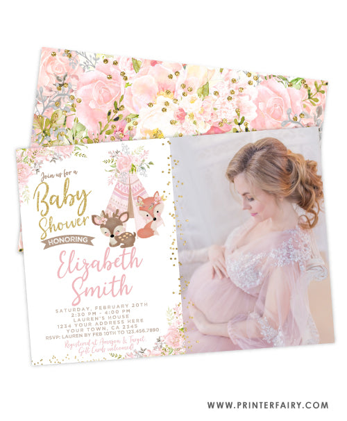 Tribal Woodland Baby Shower Invitation with photo