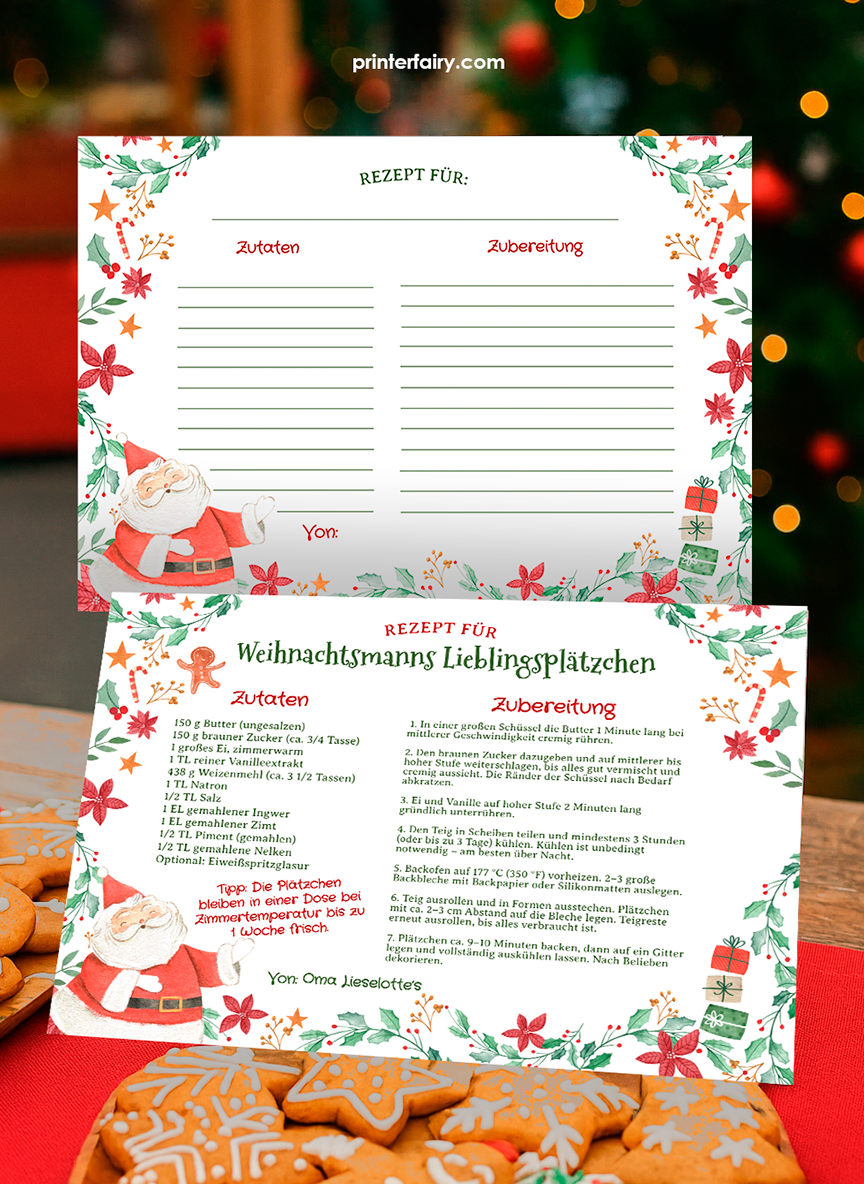 Schöne, vollständig editierbare Rezeptkarten. Ideal zum Sammeln Ihrer Lieblingsrezepte oder als Ergänzung zu Geschenken und Märkten. Demo-Version testen!