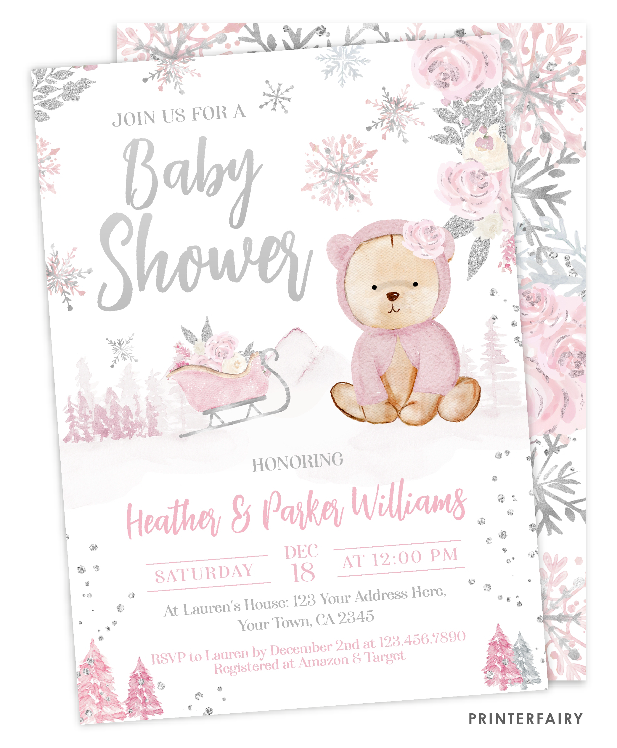 - 5x7 editable invitation front + backside.
